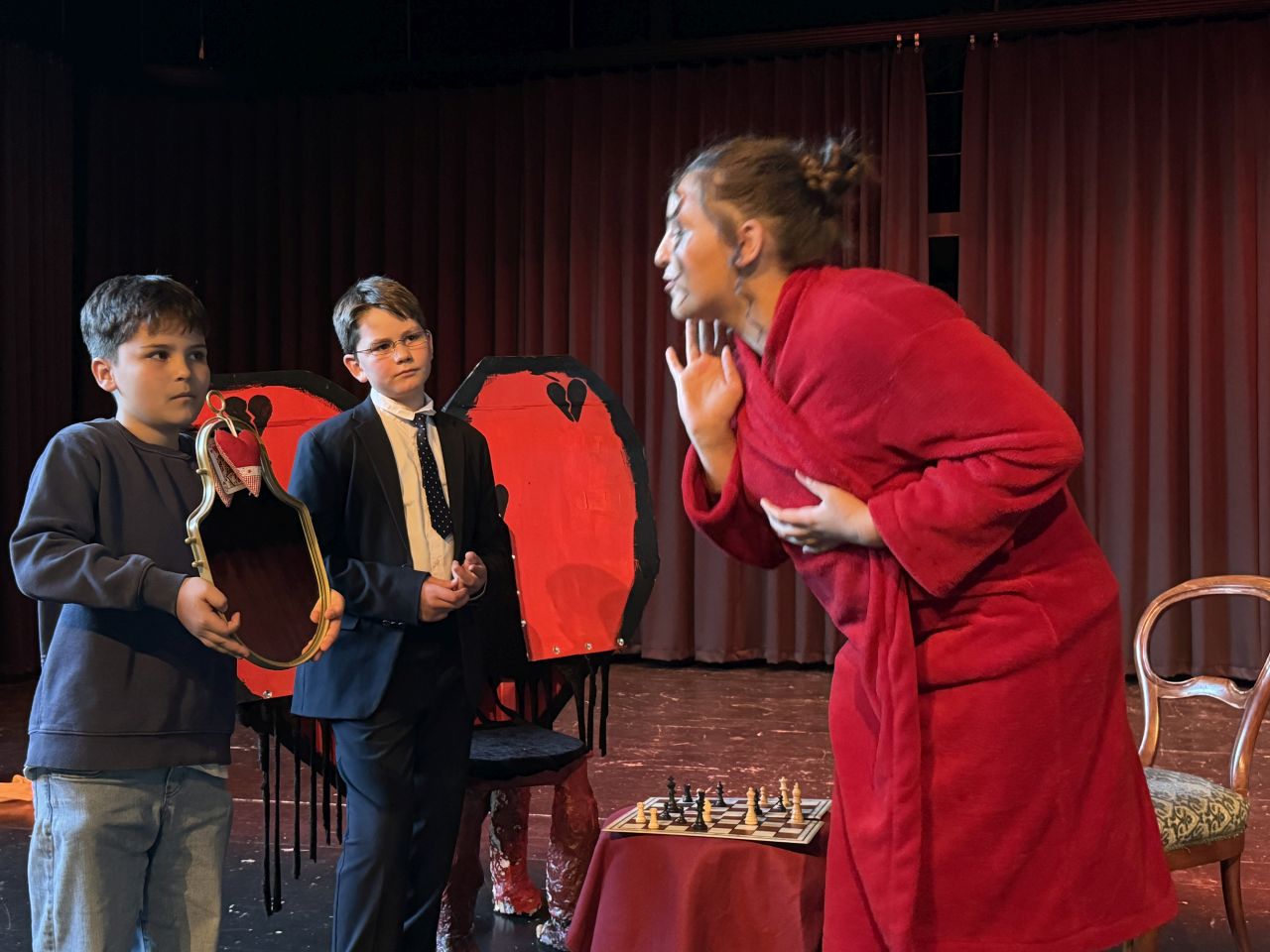 Ein finsterer „Dume Master“ mit einem dunklen Gesellen (Georgiy Boldyriev und Clara Corvinus) betritt die Bühne – und offenbart seinen Plan: Er will das Gymnasium Weingarten dem Erdboden gleich machen. Das lassen sich aber die Schüler nicht gefallen. Sie…
