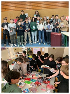 Seit Schuljahresbeginn tourt wieder ein prall gefüllter Lesekoffer durch unsere Mittelstufenklassen. Er enthält über 40 aktuelle Titel, die für Mangafans, Fantasyfreunde, Krimiliebhaber, Romantiksehnsüchtige, Sportbegeisterte, Geschichtsinteressierte u.v.m. eine Fülle von Lesemöglichkeiten bieten – für Mädchen ebenso wie für Jungen. Vielen Dank an die Buchhandlung Ravensbuch für die großzügige Leihgabe!