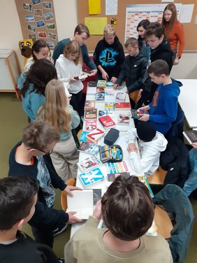 Aus 40 jüngst erschienenen Büchern können sich die Schüler*innen Lesestoff auswählen, sei es eine Liebesgeschichte, ein Krimi, eine Coming Out-Geschichte, ein Fußballdrama oder ein Fantasyroman. Der Koffer tourt jetzt ein halbes Jahr lang durch die drei achten Klassen, sodass genug Zeit bleibt, nach Herzenslust zu lesen und gerne auch mehrere Bücher auszuleihen.
