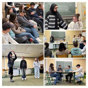 Dadurch wurde nicht nur die Klassengemeinschaft gefördert, sondern die Teilnehmenden trainierten auch Fähigkeiten wie Artikulation und Bühnenpräsenz, die ihnen auch im normalen Schulalltag zugutekommen. Man konnte beobachten, wie auch eher zurückhaltende Schüler*innen langsam in ihre Rollen hineinwuchsen und diese ausdrucksstark spielten. Auf die Frage, was ihr besonders aufgefallen sei, antwortete Jutta Klawuhn, dass sich das Zusammenspiel zwischen Mädchen und Jungen während des Workshops sehr positiv entwickelt habe.