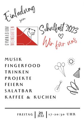 Einladung zum Schulfest am 21.7.2023 ab 17.00 Uhr