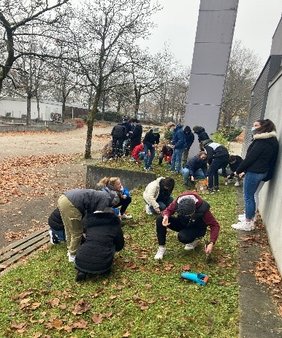 Dank vieler vieler helfender Schülerhände, dank großzügiger finanzieller Unterstützung der ELO-Bau-Stiftung DAYS 4 FUTURE, und vor allem dank des Engagements einzelner Schüler*innen, allen voran Niklas, Leo und Linda, wurden im Oktober innerhalb weniger Tage 3000 Krokuszwiebeln auf verschiedenen Grünflächen unseres Schulhofs gesetzt.