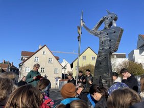 Am letzten Schultag vor den Osterferien starteten rund 150 Schülerinnen und Schüler vom Gymnasium Weingarten zu einer besonderen Tour: einer Pilgerwanderung entlang des Jakobswegs nach Ravensburg. Das war ein Erlebnis anlässlich des 50-jährigen Schuljubiläums – mit dem Ziel, Gemeinschaft zu spüren und innezuhalten, ganz gleich, welcher Religion man angehört. Schließlich ist Pilgern nicht nur christlich, sondern in fast allen Religionen vertreten. Schon früh am Morgen, bei tollen frühlingshaften Temperaturen, trafen sich die Kinder und Jugendlichen auf dem Schulhof. Nach der Begrüßung und dem symbolischen Abschalten der Handys – denn Pilgern heißt auch, sich bewusst Zeit zu nehmen und auf digitale Ablenkung zu verzichten – ging es los zur Evangelischen Stadtkirche. Dort wurde die Gruppe von Frau Stiehler, einer professionellen Pilgerbegleiterin, begrüßt. Sie sprach einen Segen und erläuterte, was die Jakobsmuschel bedeutet, die den Weg weist. Danach erhielt jeder seinen Pilgerausweis, der auf der Wanderung mit zwei Stempeln versehen wurde: an der Evangelischen Stadtkirche in Weingarten und an der St. Jodokkirche in Ravensburg. Die Route war in mehrere Stationen eingeteilt, die sich an der Ostergeschichte orientierten, aber für alle offen gestaltet waren. An jeder Station gab es kurze Impulse und Raum für eigene Gedanken. Am Pilgerdenkmal in Weingarten stand das Thema Freude im Mittelpunkt: „Worüber freue ich mich? Und wie kann ich anderen eine Freude machen?“ Die Fragen sollten zum Nachdenken anregen. Beim Waldrand ging es um das Teilen und Kennenlernen, mit einer kleinen Geste: die Schüler und Schülerinnen teilten Matzen miteinander. Matzen sind ungesäuerte Brote, die besonders im jüdischen Pessach-Fest eine wichtige Rolle spielen und an den Auszug aus Ägypten erinnern. Das Teilen der Matzen symbolisierte die Verbundenheit und das gemeinsame Unterwegssein. Das sorgte für eine lockerere und erfreute Stimmung bei den Teilnehmenden. Am Weiher beim Bismarckdenkmal beschäftigte die Gruppe das Thema Karfreitag. Alle suchten sich einen Stein aus, der seine eigenen Lasten widerspiegelte. Eine Idee, die sehr gut ankam und auch ernst genommen wurde. Es folgte eine stille Phase, in der alle Schüler eine Weile schweigend dem Weg folgten. So wurde die schöne Umgebung beim sonnigen Wetter viel besser wahrgenommen. Es ist schließlich eines der Ziele beim Pilgern, auch einmal alleine mit seinen Gedanken zu sein und in sich zu gehen. Später wurden die Steine im Kreis weitergegeben, um zu zeigen, dass Lasten gemeinsam leichter sind. Als sie in Ravensburg an der St. Jodokkirche ankamen, legten die Kinder ihre Steine ab – das war der Abschluss der Wanderung. Den verantwortlichen Lehrkräften war es besonders wichtig, dass alle mitmachen konnten – egal, welche Religion oder Weltanschauung vertreten wird. Es ging vor allem darum, gemeinsam zu gehen, über Werte wie Gemeinschaft, Freude und das Tragen von Lasten nachzudenken und sich bewusst eine Auszeit vom Alltag zu nehmen. Nach etwa fünf Stunden und knapp acht Kilometern endete die Tour mit einem Abschlusskreis und der Rückfahrt nach Weingarten. Auch Frau Stiehler zeigte sich am Ende sehr zufrieden, sie war erstaunt, wie gut alles funktioniert hatte. Viele Schülerinnen und Schüler nahmen nicht nur neue Eindrücke mit, sondern auch ein Segensbändchen und ihren Pilgerausweis als Erinnerung – ein Zeichen dafür, dass Pilgern verbindet, egal, wie man glaubt. Von Elena Mahl (Kl.10a)