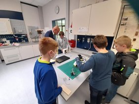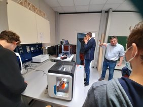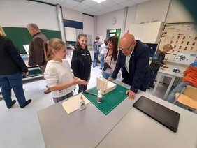 Im Anschluss führten die Kinder und Jugendlichen dem Besuch stolz die Neuheiten vor. Tief beeindruckt zeigten sich Clemens Moll, Rainer Beck und Arnold Miller von den Geräten, sie nahmen sich lange Zeit für Gespräche mit den jungen Menschen, die hier zeigen konnten, wie engagiert Technik und Digitalisierung am Gymnasium Weingarten gelebt wird.