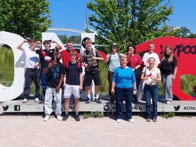 Lange ist es her, dass Schüler*innen des Gymnasium Weingarten in Frankreich waren - erst war die Pandemie und dann wurde der Austausch 2023 im letzten Moment von der Partnerschule abgesagt. Es war also höchste Zeit, einen Ausgleich anzubieten - zwar kein Austausch, aber wenigstens eine kleine Frankreichfahrt nach Lyon und Bron, der Partnerstadt von Weingarten. Auf dieses Abenteuer ließen sich 11 junge Menschen ein und opferten dafür das verlängerte Wochenende. Die erste Orientierung gab es nach der langen Zugfahrt bei einem Besuch der Bar des "Crayon", von dessen 32. Etage aus man einen schönen Blick auf die ganze Stadt hatte. Der Abend endete in einer Crêperie, wo viele Jugendliche zum ersten Mal eine Galette, einen Crêpe mit dunklem Buchweizenteig und herzhafter Füllung, probierten. Der erste Tag führte die Jugendlichen in die Altstadt von Lyon. Sie entdeckten dort unter anderem die "Traboules", die versteckten Durchgänge und Innenhöfe der historischen Häuser. Am Nachmittag stand ein "moment dansé" mit der Broner Tanzgruppe Khartala auf dem Programm. Die jungen Broner Tänzerinnen verstanden sich sofort mit den Jugendlichen und brachten sie gut zum Schwitzen. Das Ergebnis des kurzen Workshops konnte sich wirklich sehen lassen. Eine Reise durch 2000 Jahre Lyoner Geschichte, das war das Thema des zweiten Tags: von den römischen Ruinen bis zur Basilica La Fourvière, mit dem Schiff auf der Saône vorbei an Renaissance-Bauten und Seidenwebereien, zu Fuß an der Saône entlang zu den modernsten Gebäuden Lyons hin zur Mündung der Saône in die Rhône, wo sich das Musée Confluence aus dem Jahr 2014 befindet. Der Abend endete mit dem Besuch eines "Bouchon", eines typischen Lyoner Restaurants, wo sich die Gruppe mit der Präsidentin des Partnerschaftsvereins Bron/Weingarten traf. Auch wenn das Essen dort für einige Jugendliche dann doch zu fremd war, erlaubte es doch einen Blick in die echte französische Gastronomie-Kultur. Eine geführte Tour durch das Seidenweber-Viertel stand am dritten Tag auf dem Programm. Über 400 Stufen (!) ging der Weg vom Hügel Croix-Rousse hinunter bis zum Rathaus von Lyon. Danach konnten sich die Jugendlichen für verschiedene Museen entscheiden. Insgesamt eine anstrengende Reise - aber man konnte es spüren: die Jugendlichen waren dankbar für diese Gelegenheit und genossen es, endlich mal französische Luft zu schnuppern.