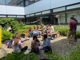 Die Innenhof AG hat heute in der Mittagspause mit einer kleinen Party den Frühling begrüßt. Alle Innenhöfe waren offen undman konnte die Sonne und das Miteinander genießen. Es gab Paella, verschiedene Drinks und Eis, wozu wir alle von unserem Preisgeld eingeladen haben. Es war so schön, dass wir es bald mal wiederholen möchten!