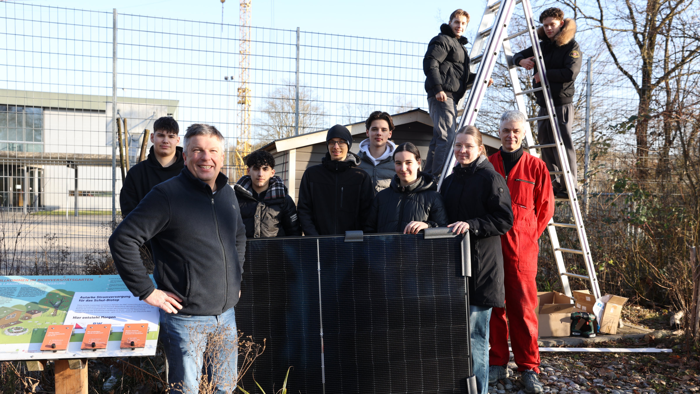 Am Gymnasium Weingarten realisieren Schülerinnen und Schüler im Unterrichtsfach NWT eine autarke Stromversorgung für das schuleigene Biotop. Unterstützung erhalten sie beim Aufbau und der Inbetriebnahme der Photovoltaikanlage durch Professor Dr. Andre Kaufmann von der RWU.