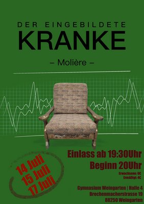 Endlich wieder Theater-AG! Im Juli werden an drei Abenden das Stück "Der eingebildete Kranke" von Molière in Halle 4 der Großsporthalle aufgeführt. Beginn ist um 20 Uhr, Einlass jeweils ab 19.30 Uhr.