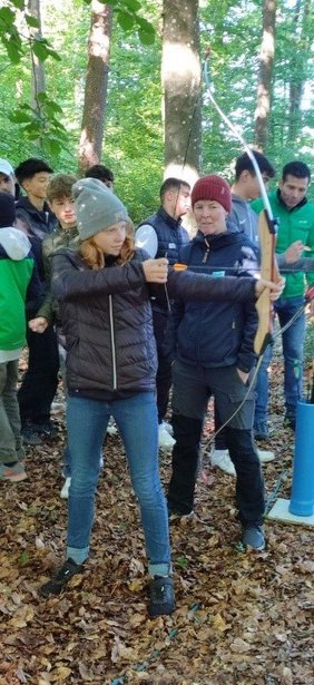 Die Schüler*innen stellten sich dabei verschiedenen Challenges, die das Wir-Gefühl stärken und zu einer guten Gemeinschaft beitragen sollten, da die Aufgaben nur im Team zu lösen waren. Das absolute Highlight war das Bogenschießen, bei dem sich die Schüler*innen genau fokussieren mussten und ungeahnte Fähigkeiten zeigten. Es war ein tolles Erlebnis für die neu zusammengewürfelten Klassen, und alle waren sich einig, dass Unterricht öfters an der frischen Luft stattfinden sollte.
