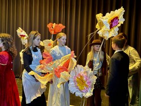 Das bunte Potpourri aus Geschichten und Figuren war nicht nur ganz hervorragend gespielt, sondern überzeugte auch mit Sprachwitz und Hintersinn. Es beeindruckte, wie die Kinder mit ihrer Theaterlehrerin Carina Steigerwald einen Text erarbeitet haben, der zur Stadt, zur Schule und aber auch zu den Darstellern passt - es war einfach ihr Stück, ihre Figuren, ihre Ideen. Vermutlich war das das Geheimnis des Erfolgs: Die Schüler durften einfach ihre Ideen umsetzen und gerade dieses Herzblut war es, das den Zuschauer so verzaubert hat. Das Bühnenbild von Friederike Dippon und ihrer Kunst AG trug einen nicht unwesentlichen Teil zur Gesamtwirkung des tollen Abends bei. Durch seine Reduktion lenkte nicht von der tollen schauspielerische Leistung ab, setze aber genug Akzente, um alle ins Wunderland mitzunehmen. Vielen Dank, liebe Unterstufen -Theater AG, für diesen zauberhaften Abend.