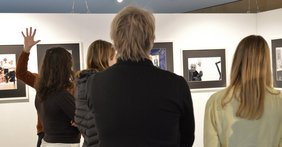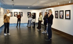 Unterricht vor Originalen und in der Auseinandersetzung mit Künstler und Galerieleiter gab es für unser Leistungsfach Kunst der Stufe 12 vor Ort in Bad Waldsee. Die vielschichtigen und beziehungsreichen Fotografien von Wynrich Zlomke zum Thema Kunst und Betrachter forderten die Schülerinnen heraus, dem Blick des Fotografen nachzuspüren. Denn sie entfalten ihr Potential oft erst auf den zweiten und dritten Blick – es lohnte sich also, genauer hinzuschauen. Wynrich Zlomke zeigte anschaulich, wie sehr es auf die Unmittelbarkeit der Situationen ankommt – und eben nicht auf künstliche Inszenierung. Und wie fruchtbar es sein kann, im Unterschied zur digitalen Bilderflut konzentriert den eigenen Blick zu schärfen und auf kreative Weise Wesentliches in den Fokus zu nehmen.