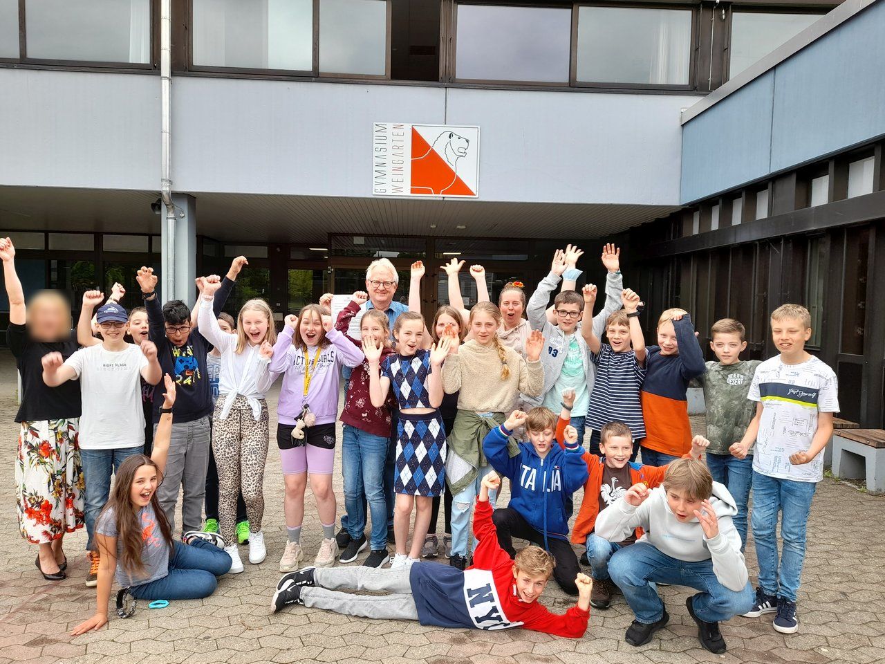 Beim Juniorwettbewerb "Mathematik ohne Grenzen" hat die Klasse 5a des Gymnasium Weingarten den dritten Platz erreicht. Insgesamt nahmen 92 Klassen mit etwa 2500 Schülerinnen und Schülern an diesem Wettbewerb teil. Die Klasse 5a wurde dabei nur von Klassen von renommierten Gymnasien in Tübingen und Ulm geschlagen. Dies bedeutet angesichts der besonderen schulischen, beziehungsweise pandemischen Situation eine große Leistung. Ein großer Dank geht dabei auch an die Mathematik-Lehrerin dieser Klasse, ohne deren Engagement dieser Erfolg nicht möglich gewesen wäre. Die Klasse wird bei der Preisverleihung im Ravensburger Spieleland dabei sein und darf dann den Tag im Spieleland bei kostenfreiem Eintritt verbringen. Das haben sich die Kinder sicher verdient. Die Schulleitung des Gymnasium Weingarten gratuliert herzlich!