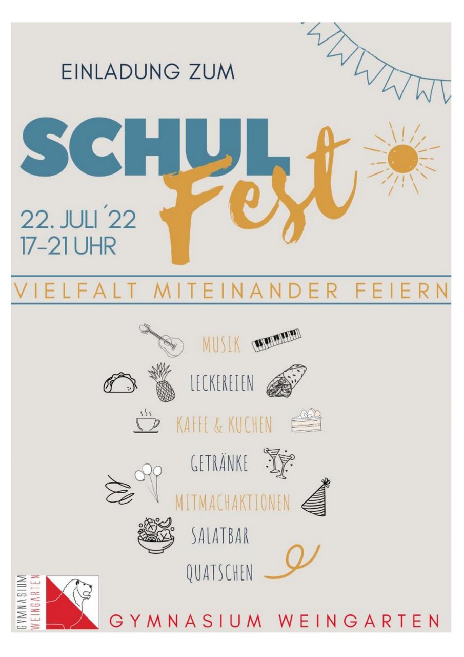 Am Freitag, den 22. Juli wird unser diesjähriges Schulfest von 17-21 Uhr stattfinden.