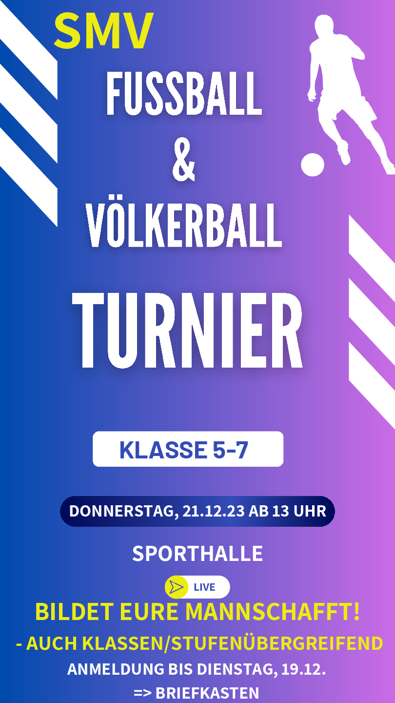 SMV-Turnier Fußball und Völkerball am Donnerstag 21.12.2023 ab 13.00 Uhr
