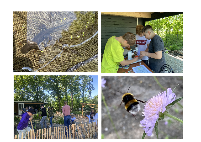 Vor den Ferien waren die Sechser aktiv. Sie setzten Stauden und das Biotop wurde erkundet. Die Schüler genossen den Lernstandort im Grünen. Denn die ersten Bergmolch - Kaulquappen wurden gesichtet und Insekten aus der Umgebung bestimmt. Rückschwimmer, Taumelkäfer, Gelbrandkäfer und viele andere Insekten tummeln sich in unserem 100m2 Teich.