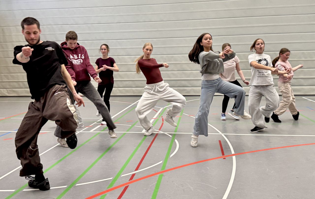 Diesen Herbst hatte das „Abenteuer Mittelstufe“ wieder einen ganz besonderen Workshop im Angebot: Hiphop mit dem amtierenden Weltmeister Raphael Nagel von der Tanzschule Geiger. Ganz ohne Allüren und mit viel Feingefühl leitete er die Teilnehmerinnen aus den Klassenstufen 7-10 an. Schon bei der ersten Probe war eine gute Atmosphäre spürbar, die sich durch die gesamten fünf Wochen ziehen sollte. Die Teilnehmerinnen lernten schnell und begeistert. Erarbeitet wurde eine atemberaubend schnelle Choreografie, die ein perfektes Zusammenspiel der Teilnehmerinnen zeigte, aber auch Raum ließ für individuelle Moves. Bemerkenswert ist auch, dass alle gleichermaßen eingebunden waren und ihre neu erlernten Fähigkeiten zeigen konnten. Eine Schülerin sagte, es habe ihr gefallen, dass man einfach hingehen und ausprobieren konnte – das Ergebnis kann sich sehen lassen. Und wer weiß, vielleicht bekommt die Schulgemeinschaft die „Choreo“ einmal vorgeführt? Herzlichen Dank an die Bürgerstiftungen Weingarten und Kreis Ravensburg, die diesen Workshop möglich gemacht haben!