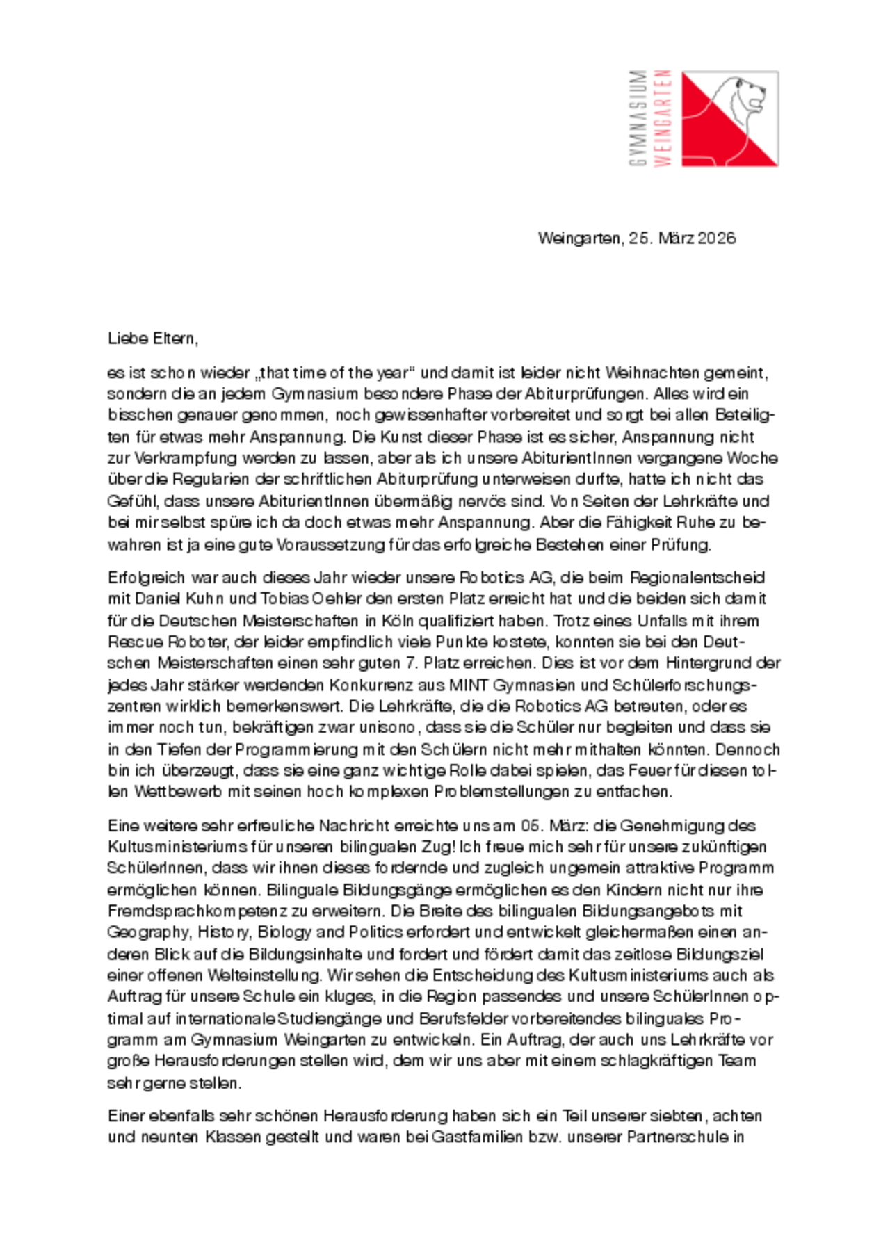 Das Gymnasium Weingarten wird 50 - Informationen rund um unser Jubiläum